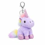 Glittery Unicorn Horn Keyring Keychain, Pink Plush with Rainbow Mane and Tail